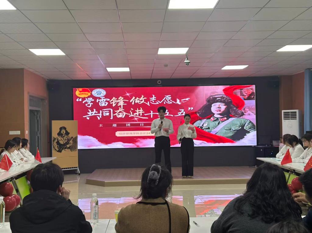 本站讯(经济管理学院 曹力勤)为深刻领悟雷锋精神的时代内涵,激励青年学子以实际行动迎接“十五五”规划的新征程,3月24日晚,经济管理学院在博达楼A314教室开展了“学雷锋 做志愿 共同奋进‘十五五’”示范性主题团日活动。校团委书记王玮,校团委副书记刘嘉妮,经济管理学院党总支副书记毕发钱,校团委老师及各二级学院团总支书记莅临现场观摩指导。 活动在“学雷锋精神”主题短片中拉开序幕,一幕幕感人至深的画面、一句句质朴坚定的话语,为整场活动奠定了思想基调。随后,雷锋精神互动问答环节将现场气氛推向高潮。主持人围绕雷锋生平、雷锋精神内涵以及新时代如何践行雷锋精神展开提问。在一问一答间,大家对雷锋精神的时代价值有了更深刻的理解。 红色快板表演精彩亮相。清脆悦耳的快板声伴随着朗朗上口的唱词,将雷锋故事与当代大学生的责任担当巧妙融合,传统曲艺与红色文化的碰撞赢得了在场师生的阵阵喝彩。 在志愿服务经历分享环节,两位学生代表讲述了他们在社区服务、支教助学中的亲身经历,从最初的羞涩到后来的坚守,让在场同学深切感受到了“赠人玫瑰,手有余香”的真谛。 专业技能展示环节精彩纷呈。会计专业学生展示了精湛的点钞技能,指尖翻飞、手法娴熟;烹饪班同学现场呈现了裱花技艺,在他们的巧手下,一朵朵奶油花朵在转盘上绽放;茶艺表演队优雅登场,举手投足间尽显中华传统文化的宁静致远与专业技能的熟练。这一系列展示生动诠释了将雷锋“螺丝钉”精神植根于专业学习之中的深刻内涵。 活动最后,同学们在“雷锋志愿卡”上郑重写下了自己的许诺:“愿以专业技能服务社区老人”“希望加入支教队伍”“在‘十五五’期间成为行业能手”……一张张小小的卡片,承载着青年学子对未来的美好期许,更凝聚着他们立志奉献社会的坚定决心。 护理学院团总支书记刘小三老师对本次示范性团日活动进行了点评。她表示,本次活动主题鲜明、形式新颖,将雷锋精神学习与专业特色有机融合,充分展现了经管学子扎实的专业素养和昂扬的精神风貌。她寄语同学们要将雷锋精神内化于心、外化于行,在服务社会、奉献青春中实现人生价值。 本次团日活动将雷锋精神学习与专业特色展示相结合,引导青年学子将个人理想融入国家发展的“十五五”蓝图之中。相信在未来的日子里,我校青年必将把此次活动的感悟转化为前行动力,以志愿之名续写雷锋故事,以奋斗之姿投身强国建设,让青春在服务人民、奉献社会的过程中绽放出更加璀璨的光芒。 一审:曹力勤 二审:毕发钱 三审:邓晶 上一条:经济管理学院党总支开展困难学生走访活动 下一条:经管英才 职海启航——经济管理学院顺利举办2026届就业育人促进活动