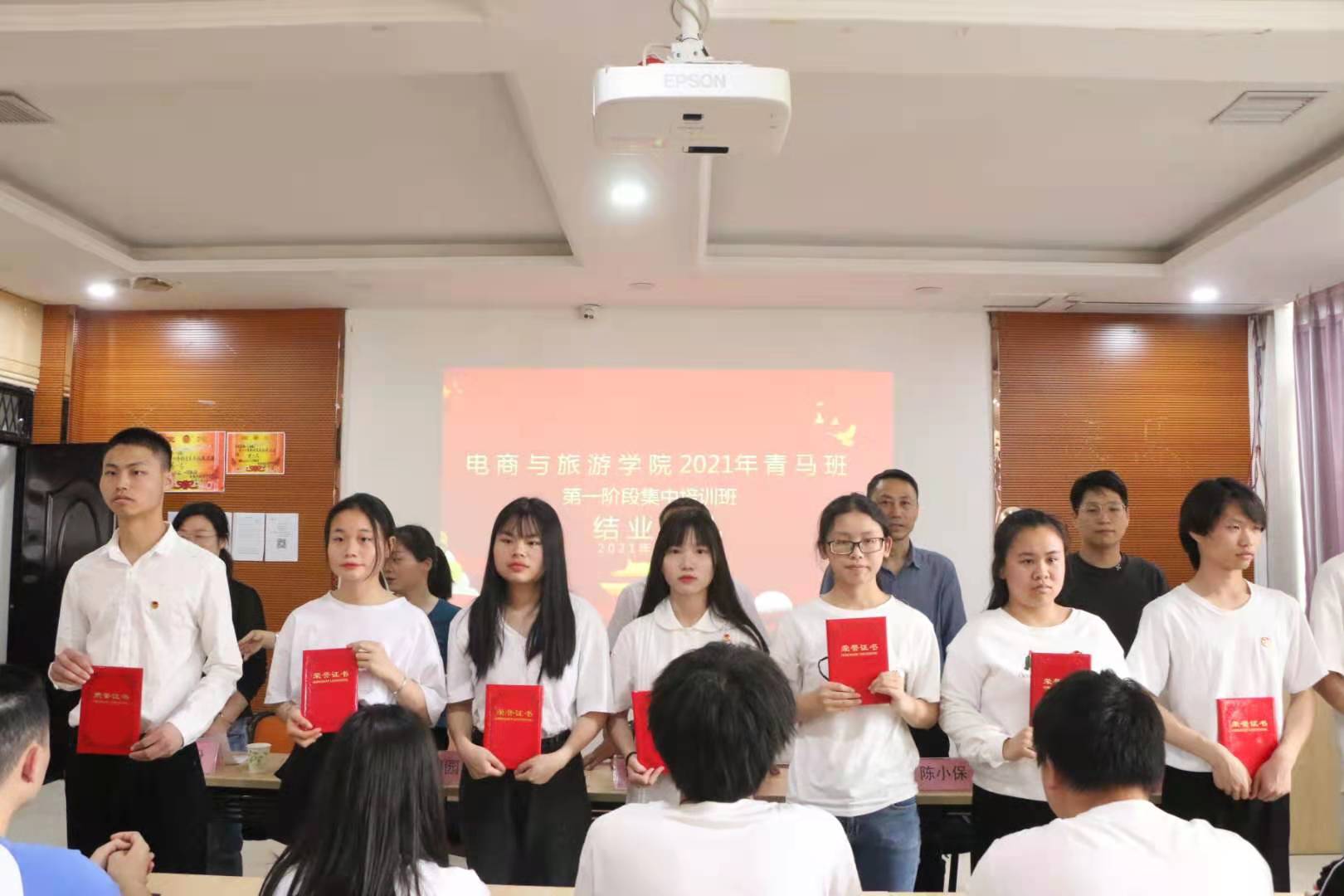 本站讯(电商与旅游学院 马思源)5月7日,电商与旅游学院首届青马工程大学生骨干培训班结业典礼在电商基地举行,由电商与旅游学院党总支书记谭育林,党总支副书记陈小保,学工科科长熊园园,辅导员老师王宁以及全体培训班学员出席会议,会议由电商与旅游学院团总支书记余纷老师主持。