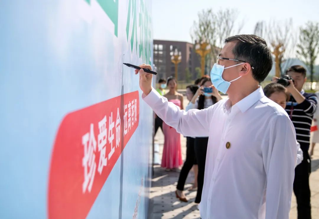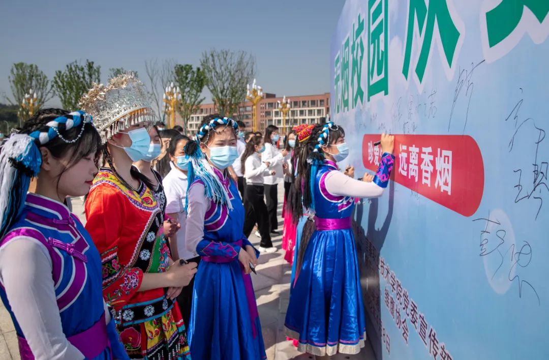 彝族学生曲比俄里带领在场师生庄严宣誓,郑重承诺远离香烟,拒绝香烟,大家纷纷在展板上签名,书写自己对维护校园无烟环境的承诺。伴随着歌曲《领航》的激昂旋律,此次活动落下帷幕。