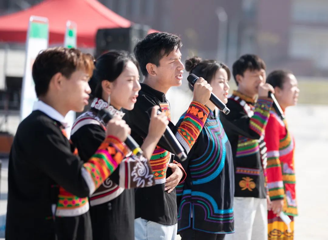 本站讯(师范学院 周思昀)人间四月天,春意正盎然。伴随着动听的旋律,身着鲜艳的民族服装,踏着轻快的脚步,我校各民族学生欢歌笑语,手拉着手跳起了彝族达体舞。4月8日,由校党委宣传部、工会、团委主办,师范学院、校雏鹰协会协办的“无烟校园 从我做起”主题教育活动在新校区开物广场举行,吸引了来往师生们的目光和驻足。