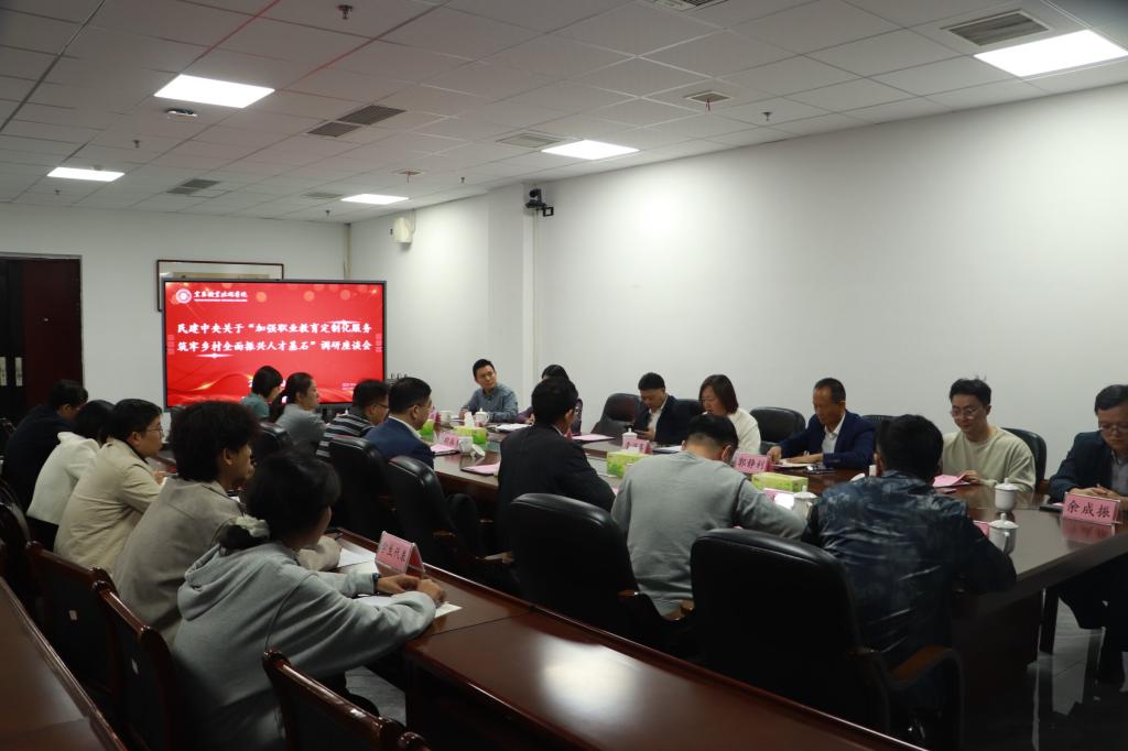 本次调研以“加强职业教育定制化服务,筑牢乡村全面振兴人才基石”为主题。在调研座谈会上,李沛熹介绍了此行调研的目的和意义。任军对各级领导的到来表示热烈欢迎,在介绍了学校的概况后,就学校涉农专业开设情况和在乡村振兴工作过程中遇到的问题和困惑进行了交流分享。宜春市教体局四级调研员胡振东对宜春市涉农学校、专业以及目前存在的现实困难进行了汇报。宜春民建会员、江西星火生物科技有限公司总经理刘永康结合企业实际,对学校如何培养农业产业工人提出了自己的看法和见解。会上,我校师生代表也相继对农业发展的有关看法进行了交流。座谈会由谢慧主持。