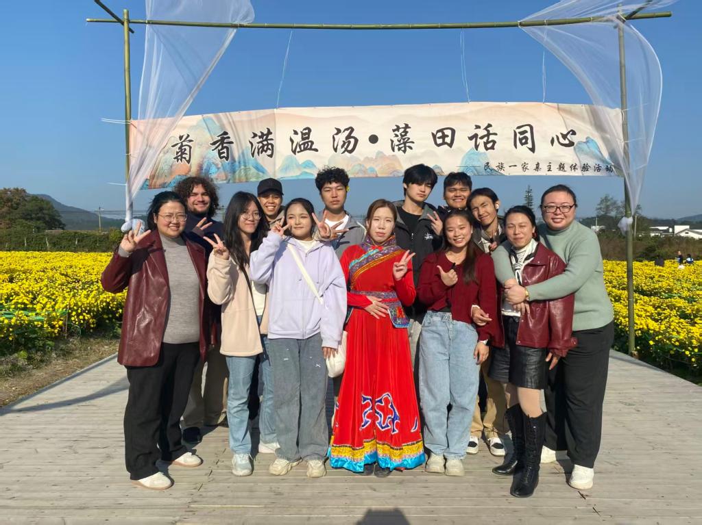 本站讯(团委 王玮 国际合作与交流处 杨慧)11月22日,校团委与国际合作交流处的共同组织我校新西兰志愿者及留学生在明月山温汤镇大滋然菊花基地参加“民族一家亲”主题体验活动,与来自宜春幼专、温汤中心小学等多所学校的师生们齐聚一堂,在特色农业体验与文化交融互动中,以沉浸式体验、互动式交流为特色,让新西兰志愿者及留学生感受中国多民族文化魅力,增进中外青年情感联结。