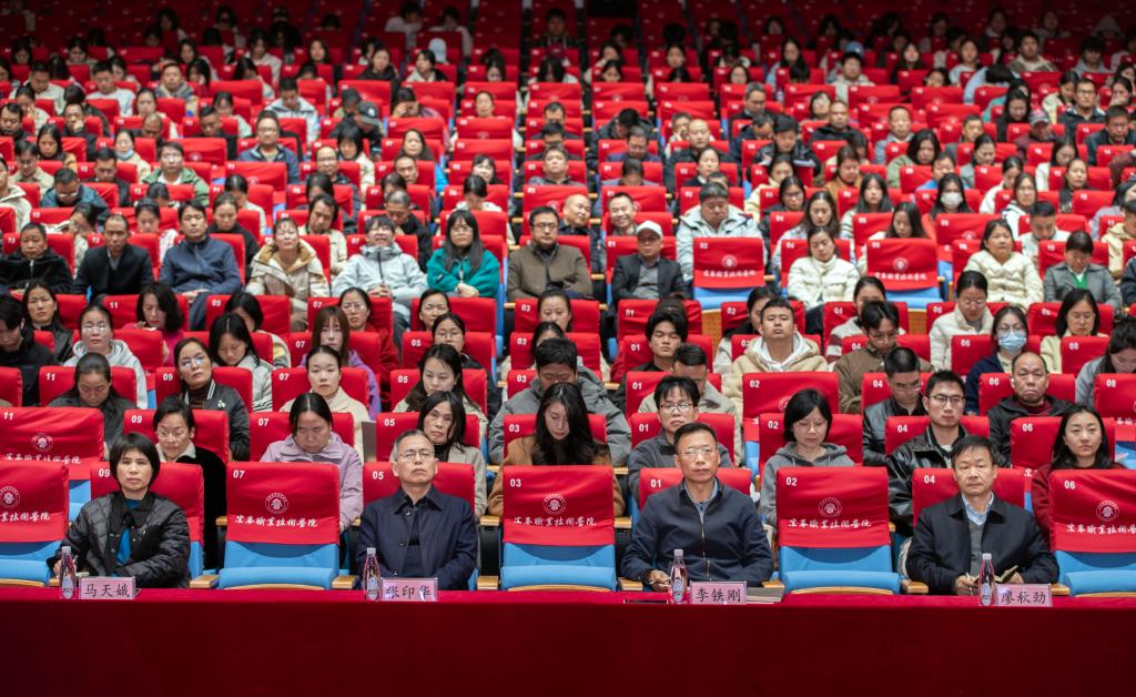 本站讯(党委宣传部 潘睿琦)11月28日下午,学习贯彻党的二十届四中全会精神市委宣讲团报告会在我校举行。市委宣讲团成员、宜春幼儿师范高等专科学校党委副书记、校长杨学龙教授作宣讲报告。学校党政领导班子成员、师生代表等850余人到场聆听。我校党委副书记、校长李铁刚主持报告会。
