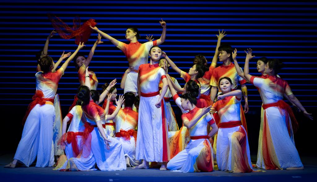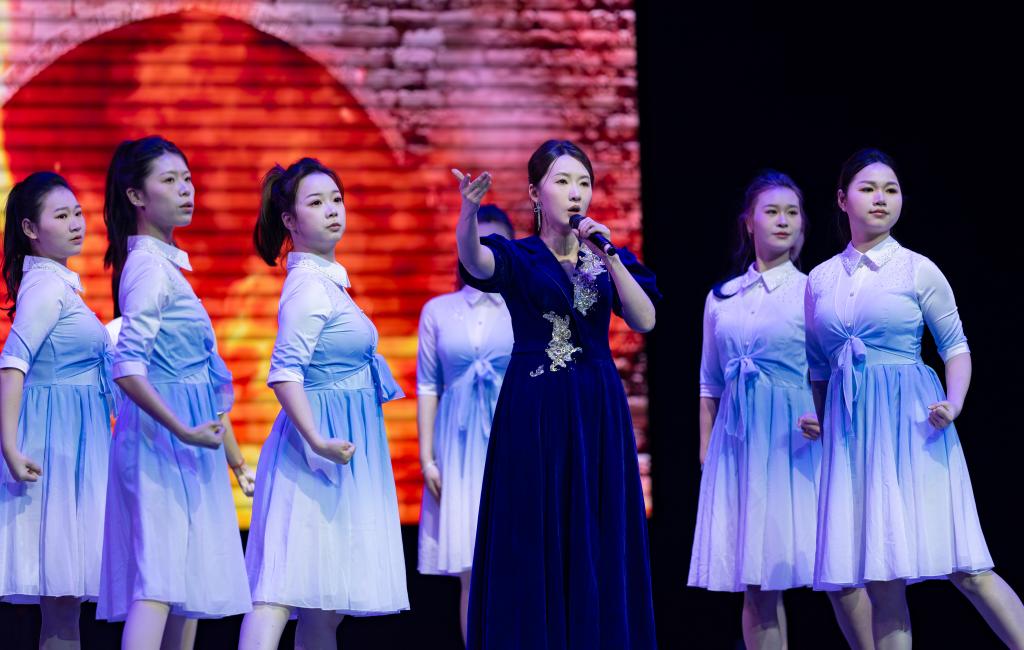 巡演在开场舞《读一读红色家书》中拉开帷幕,婉转歌声、翩翩舞姿将观众们带入红色记忆的长河,为整场巡演奠定了庄重而温情的基调。我校选送的舞蹈《我心中的红》,以极具感染力的舞台语言,诠释了信仰力量。舞者擎动红旗,身躯舒展间,旗帜化作奔涌的红色江河,每一次旋转与抬手,都饱含着滚烫的赤诚。歌舞《春风十万里》徐徐展开一幅新时代的生机画卷。两位歌者声情并茂,嗓音如春风拂过原野;舞者步履轻盈,手中小红伞似蝶翩跹,随旋律流转绽放,勾勒出一派百花竞放的明媚景致。