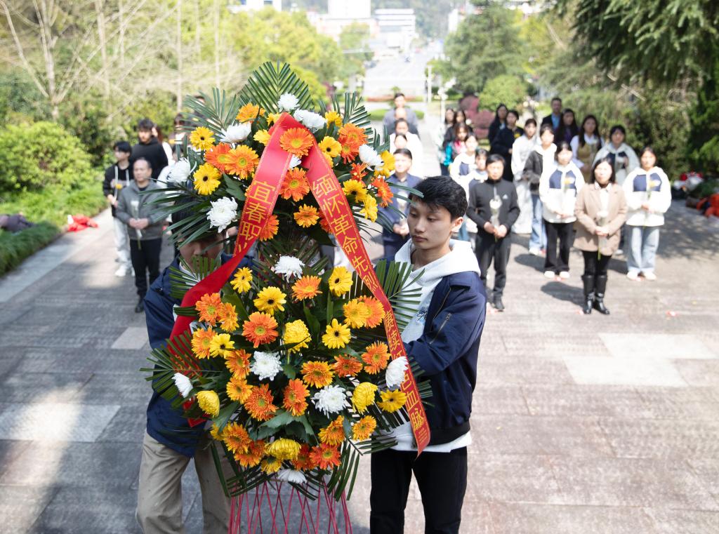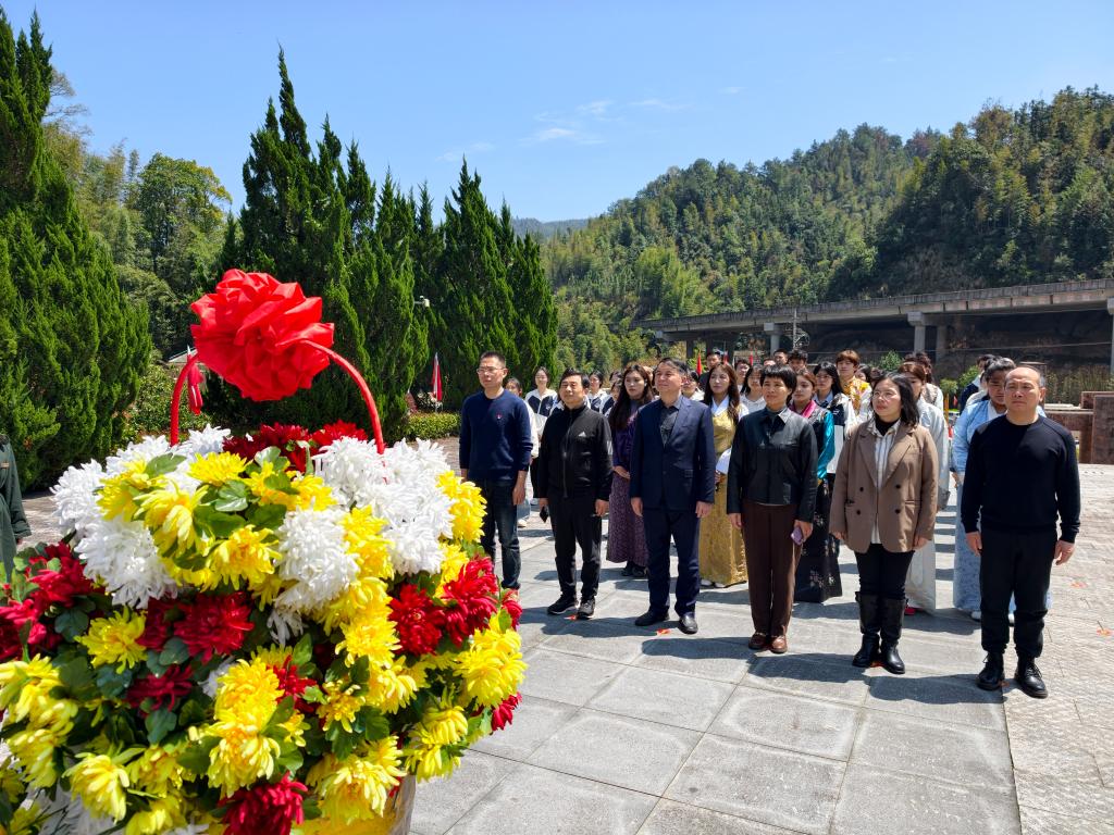 本站讯(大学生通讯社 程晓欢)青山埋忠骨,史册载功勋。4月1日,清明节前夕,党委副书记刘平涯,党委委员、组织部长韩海荣,党委委员、宣传部长马天娥与辅导员、少数民族学生、红色班级学生代表50余人赴宜春市铜鼓县开展“清明祭英烈”活动。