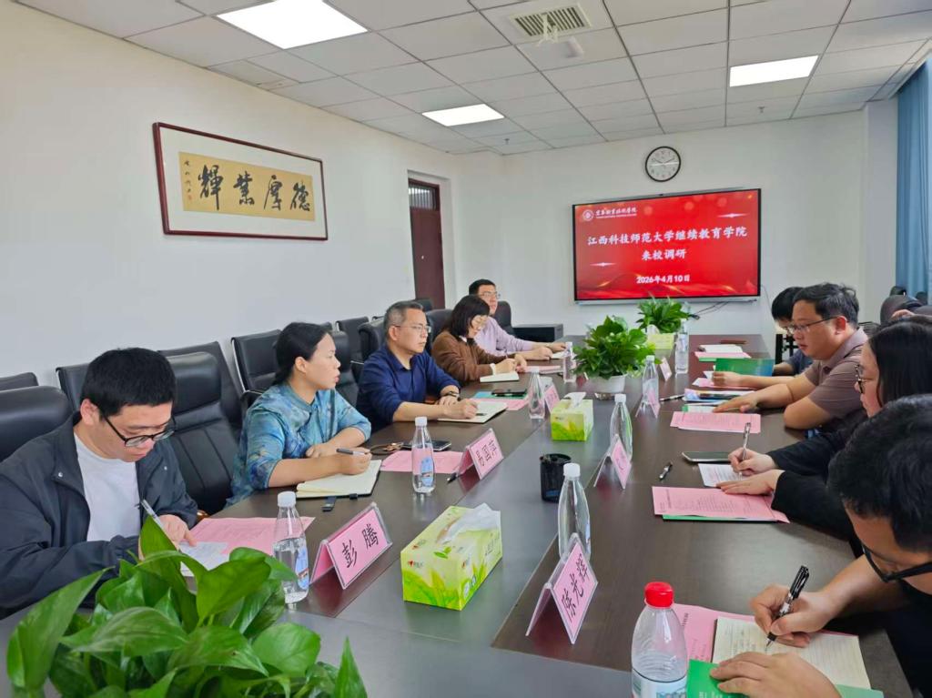 本站讯(继续教育学院 廖雪韵)为深化校际合作,拓宽继续教育领域合作空间,推动产教融合与社会服务提质增效,4月10日上午,江西科技师范大学继续教育学院副院长谢元海一行来我校调研。座谈会由学、校党委委员、副校长张印华主持。继续教育学院、护理学院、机电与新能源汽车学院、社会合作办相关负责人参加座谈。