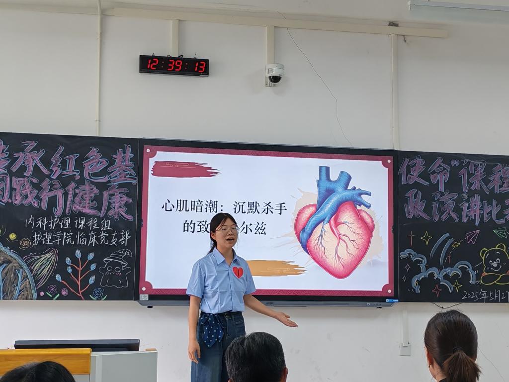 本站讯(护理学院 赵丽丽)5月27日中午,护理学院临床党支部、内科护理课程组在和济楼C112举办“传承红色基因,践行健康使命”课程思政演讲比赛。本次比赛自5月6日启动以来,受到了同学们的广泛关注和积极参与,经过初赛的激烈角逐,最终有8个团队脱颖而出,成功晋级决赛。
