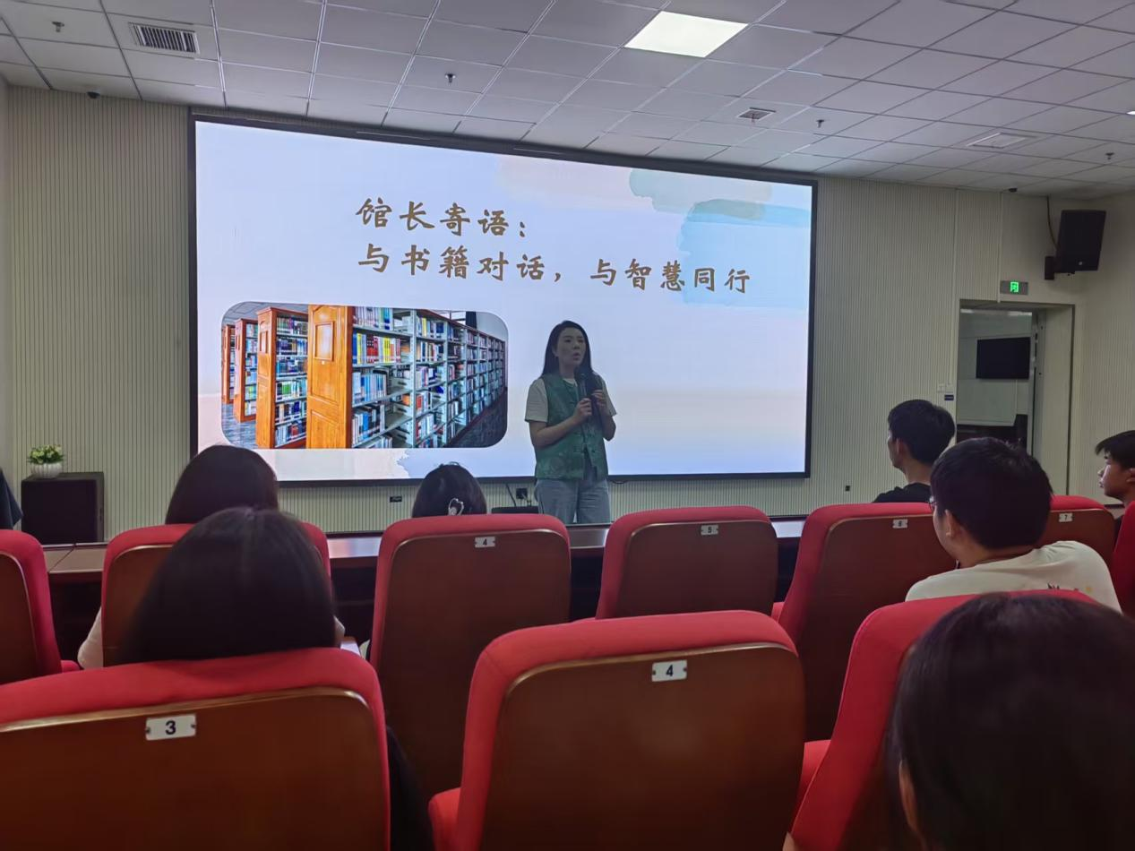 活动伊始,图书馆馆长施旸以“与书籍对话,与智慧同行”为题致辞。她强调,在数字时代,图书馆不仅是知识宝库,更是思想交锋与智慧孵化之地,鼓励新生善用馆藏资源,培养独立学术人格。