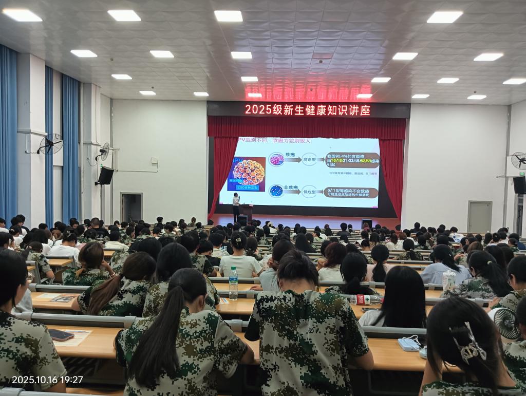 本站讯(医学院 李翔)近日,我校2025级新生入学体检已圆满完成。为帮助大家更好地适应大学生活,掌握守护身心健康的金钥匙,10月16日晚上,医学院(附属医院)在仁济楼小礼堂举行“享健康生活 创出彩人生”2025级新生健康知识专题讲座。讲座特邀宜春市新建医院党委书记、副院长黄承洲授课。2025级300余名新生代表参加讲座。