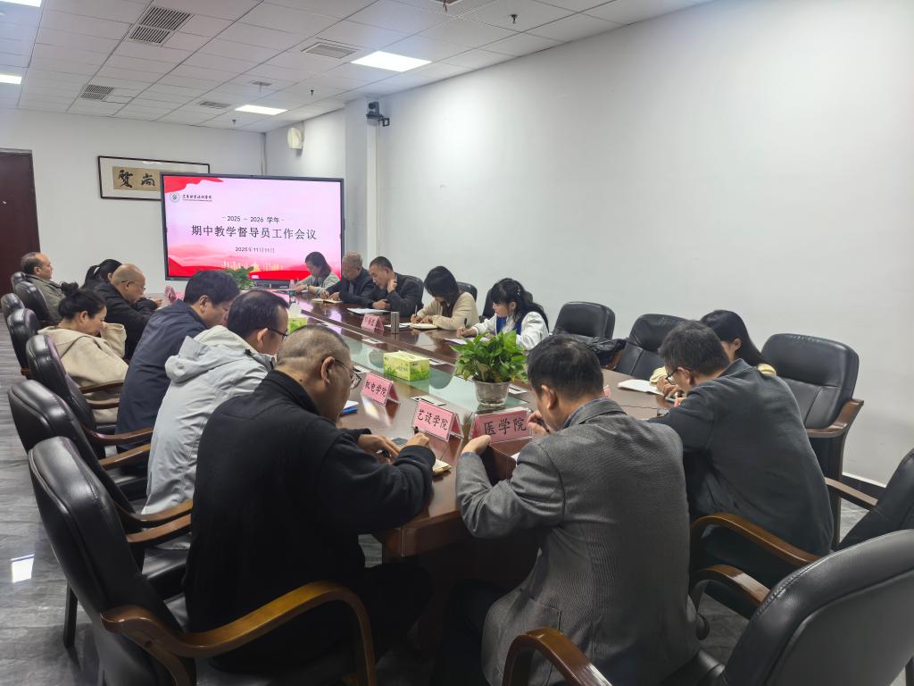 本站讯(教学督导处 舒丽芳) 为全面总结本学期期中教学督导工作成效,梳理存在问题与短板,进一步发挥教学督导在提升教学质量、规范教学管理中的重要作用,11月11日下午,我校在天工楼第一会议室召开期中教学督导员工作会议。校党委委员、统战部部长邓伟蓉出席会议并讲话,全体教学督导员参加会议。会议由教学督导处副处长张妮娜主持。