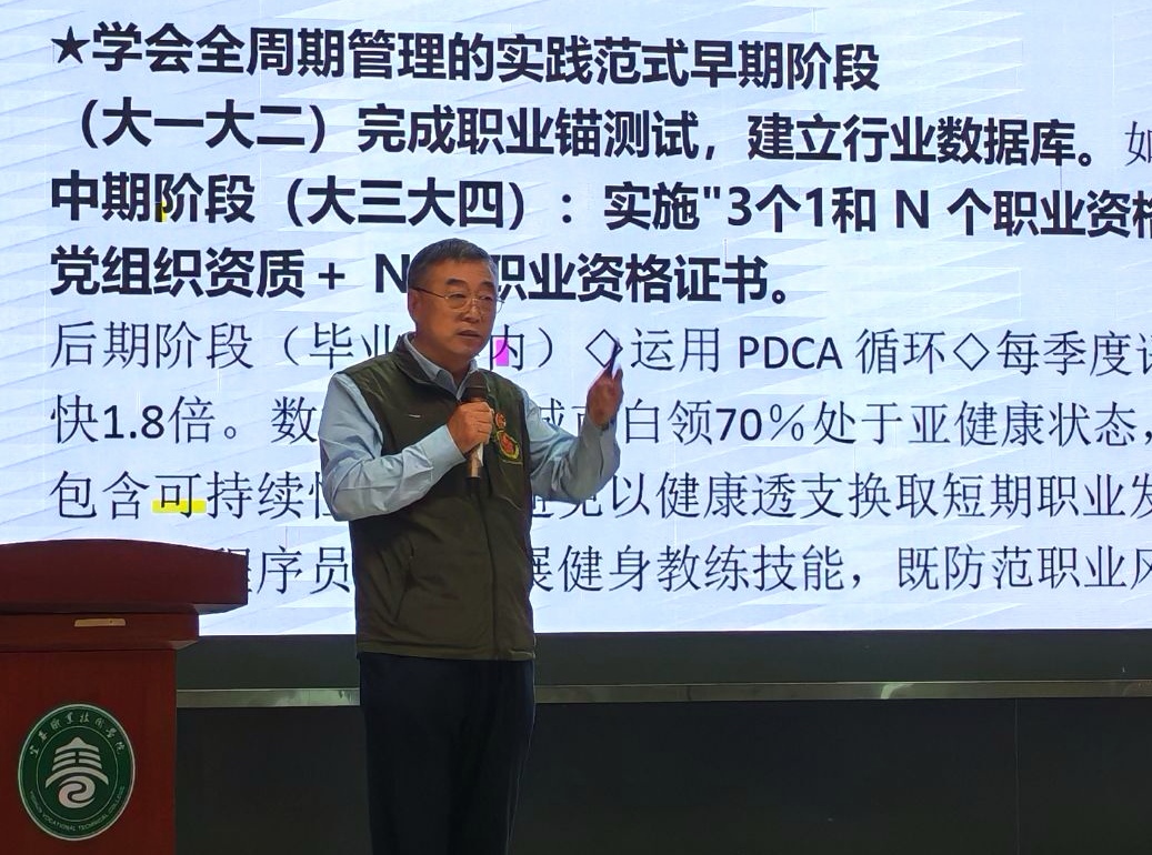 本站讯(团委 张为岷 学生记者 钟彬)为深入学习贯彻习近平总书记关于高校毕业生就业工作的重要指示批示精神,落实省教育厅2026届高校毕业生就业育人系列活动部署,11月11日下午,招生就业处联合校团委在博达楼演播厅成功举办“未来工匠说 青年面对面”职业规划专题讲座。本次讲座聚焦“体制内热门岗位专项攻略”,研究员赵洪贵担任主讲嘉宾。全校450名学生代表现场参与,团委副书记刘嘉妮主持。
