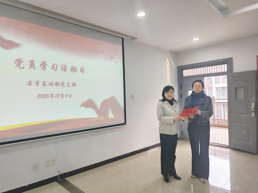 本站讯(医学基础部党支部 金晶)为深入学习贯彻习近平总书记关于教育科技人才的重要论述及相关政策,切实筑牢支部党员的思想根基,12月9日,医学基础部党支部组织开展专题学习会暨第四季度党员“政治生日”活。支部全体党员参加活动。