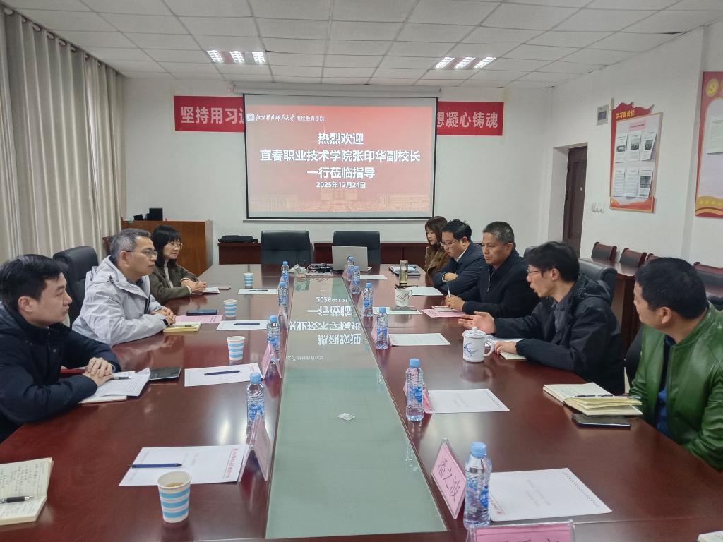 本站讯(继续教育学院 易扬)12月24日,校党委委员、副校长张印华带领继续教育学院一行四人,先后赴江西旅游商贸职业学院、江西科技师范大学开展继续教育工作专项学习交流。