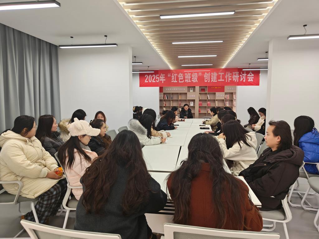 本站讯(党委学生工作部 杨文姝)为进一步深化红色文化育人与思政育人深度融合,充分发挥“红色班级”在学生成长成才中的引领作用,1月9日下午,学校党委学生工作部在“一站式”学生社区红色书屋组织召开2025年“红色班级”创建工作研讨会。校级“红色班级”辅导员及学生代表参加,会议由党委学生工作部部长谢海英主持。