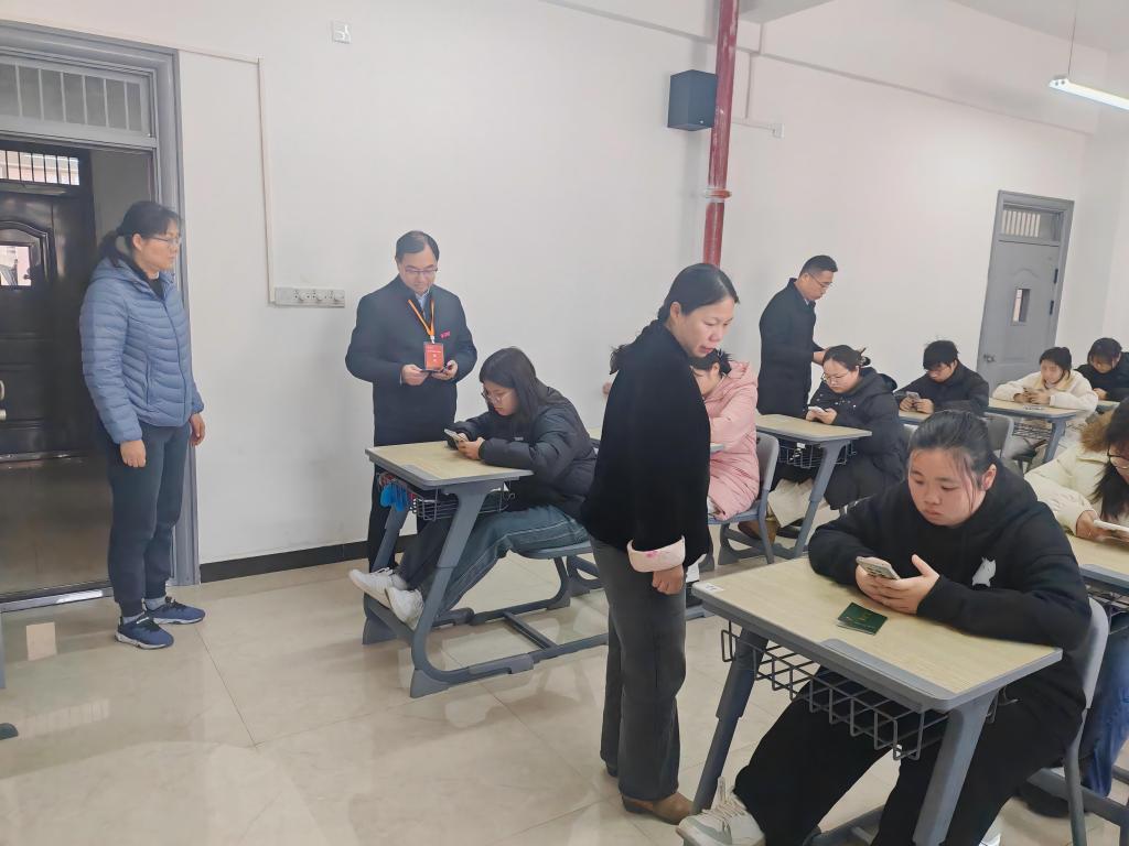 当日,巡考组首先抵达护理学院教务科,与工作人员开展现场交流。工作人员结合无纸化考试的实际运行情况,向巡考组详细汇报试题组卷、线上考试管理、考生线上作答等全流程工作安排。李鹏成一行认真聆听讲解,针对系统稳定性、考试公平性保障等细节与工作人员深入交流,细致了解考务工作的具体落实举措。随后,巡考组深入护理学院考场实地督查。考场内,学生们通过移动设备有序参与无纸化考试,监考人员全程在岗履职,考场秩序规范有序。巡考组现场查看考生作答状态、监考工作开展情况,对护理学院无纸化考试予以高度肯定。