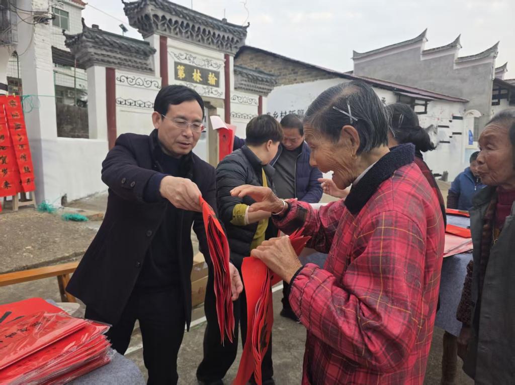 本站讯(艺术与设计学院 郭晶)岁序更替,春潮渐涌。为扎实推进党建共建与中华优秀传统文化传承深度融合,1月16日,我校艺术与设计学院党总支联合机关第一党支部,组织党员教师、书画专业师生代表赴我校乡村振兴驻村点樟树市黄土岗镇谢家村开展“党建共建手牵手墨香春联进万家”主题党建活动。活动以笔墨为媒、以春联为礼,将党的关怀与新春祝福精准送达基层群众,打通服务群众“最后一公里”。
