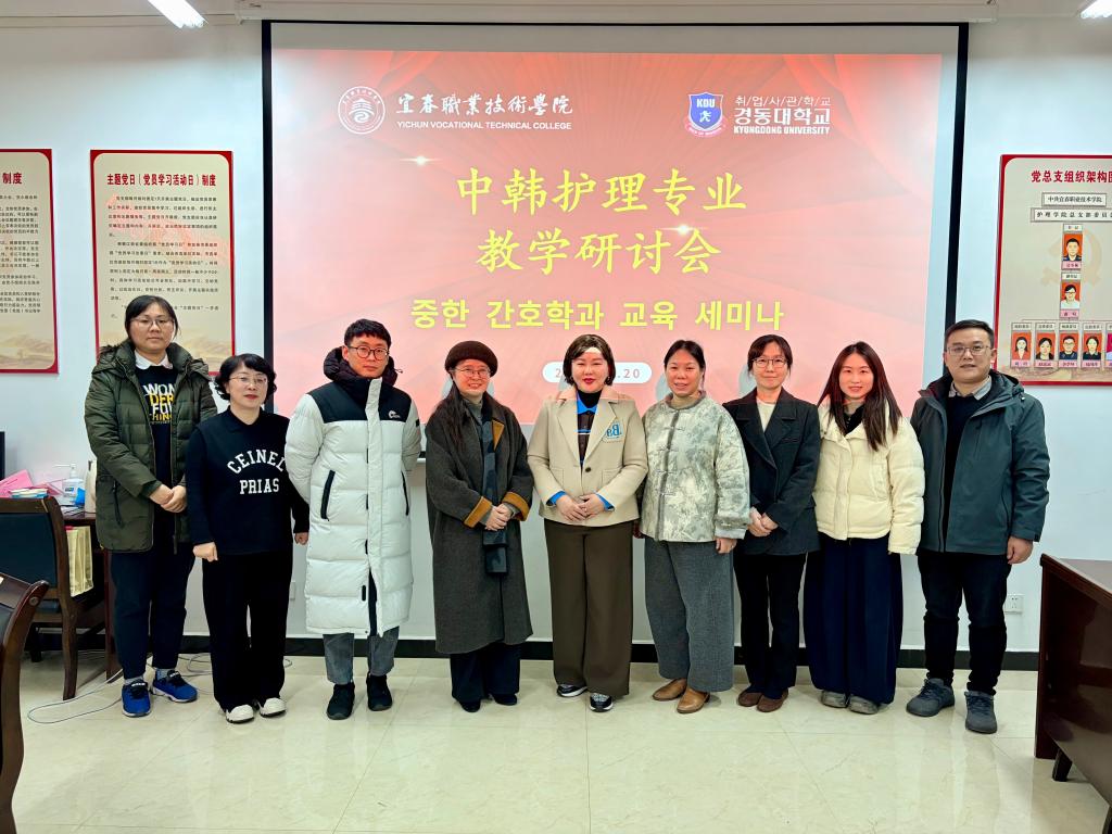 1月20日下午,中韩护理专业教学研讨会在和济楼C218举行。韩国京东大学护理学院副院长韩沚扜、教授安允姬,我校国际合作与交流处及护理学院相关负责人、中韩班师生代表参会。护理学院院长易国萍主持会议。会上,易国萍介绍我校中韩合作护理专业办学成果,期待与京东大学进一步共育优质护理人才。韩沚扜分享了韩国护理教育理念与实训模式,肯定合作成效并期待拓展师资互访、资源共享等合作。双方围绕中韩护理专业人才培养方案实施、课程体系与实践教学环节对接、教学资源建设等方面深入研讨,为完善中外人才培养方案提供重要参考。