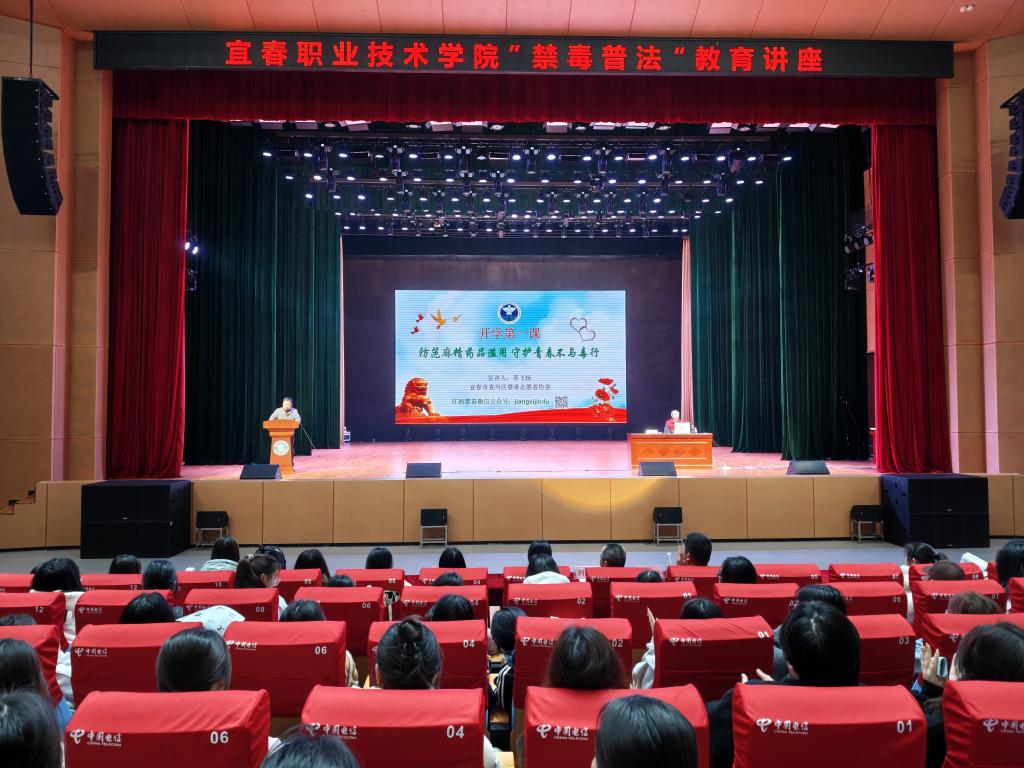 本站讯(保卫处 余霞)为进一步增强我校学生毒品防范意识,筑牢校园禁毒安全防线,3月31日下午,我校出彩大会堂内座无虚席,一场主题为“防范麻精药品滥用,守护青春不与毒行”的禁毒普法教育活动拉开帷幕。本次活动由袁州区禁毒志愿者协会、袁州分局禁毒大队、湖田派出所与我校联合举办。我校学生代表共计1000余人参与本次活动。活动由校保卫处处长周军华主持。