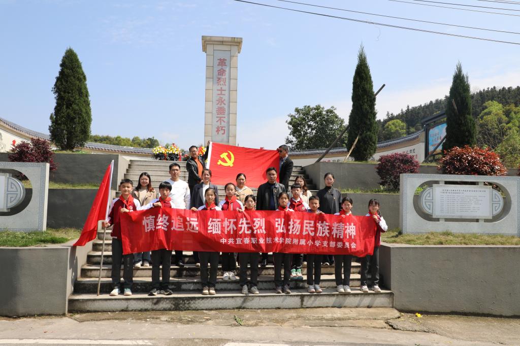 本站讯(附属小学 易云艳)为弘扬爱国精神,传承红色基因,推进“童心向党,出彩未来”党建品牌建设,4月1日下午,宜春职业技术学院附属小学部分党员教师与少先队员前往江丰烈士墓,开展清明祭扫活动。