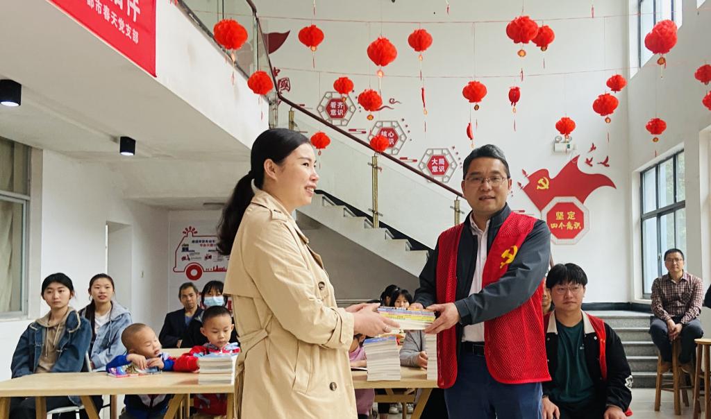 活动开始,主持人熊瑶老师宣读本次活动的方案与流程,随后文灏代表继续教育学院党支部向宜阳社区书屋捐赠中外名著和儿童读物,宜阳社区罗雅丽书记表示了感谢。
