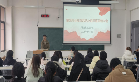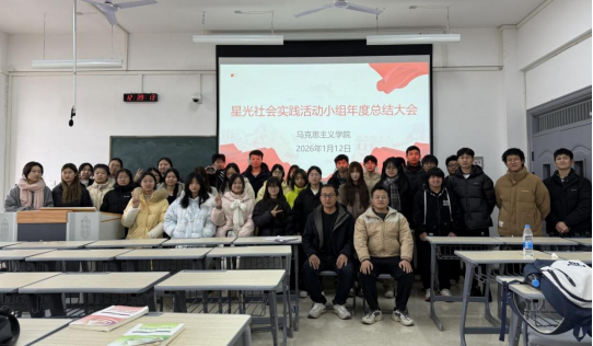 本站讯(马克思主义学院 张保揭 屈鑫)为系统回顾2025年度星光社会实践活动小组工作成果,科学谋划未来发展路径,进一步增强社团的凝聚力和引领力,2026年1月12日中午,马克思主义学院“星光”社团于日新楼C402召开2025年度总结大会。此次活动邀请社团指导老师张莉彬、张保揭参与,马克思主义学院院长钱爱文莅临指导,社团全体成员参与。