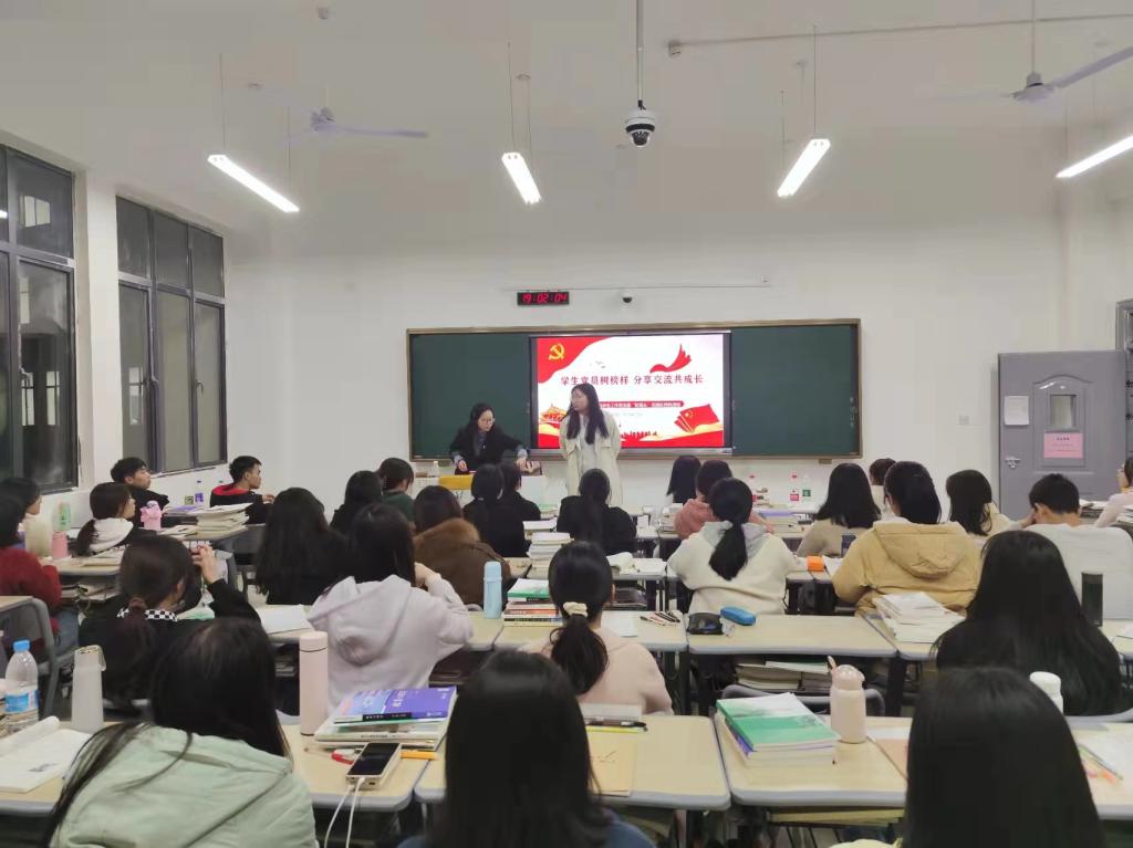 本站讯(师范学院学生工作党支部 黎佳佳)为贯彻落实“我为群众办实事”实践活动要求,发挥学生党员的先锋模范作用,激励学生从身边党员身上汲取奋进力量,2021年11月23日晚,师范学院学生工作党支部在20级大专班级教室举办了“学生党员树榜样 分享交流共成长”优秀学生党员经验分享活动,邀请了学前本科21201班吴洁、21202班王学丽、21203班凌静、21204班邓紫燕4位学生党员分享了他们的入党经历及学习经验,本次活动由学生工作党支部书记黎佳佳和组织委员周思昀主持。