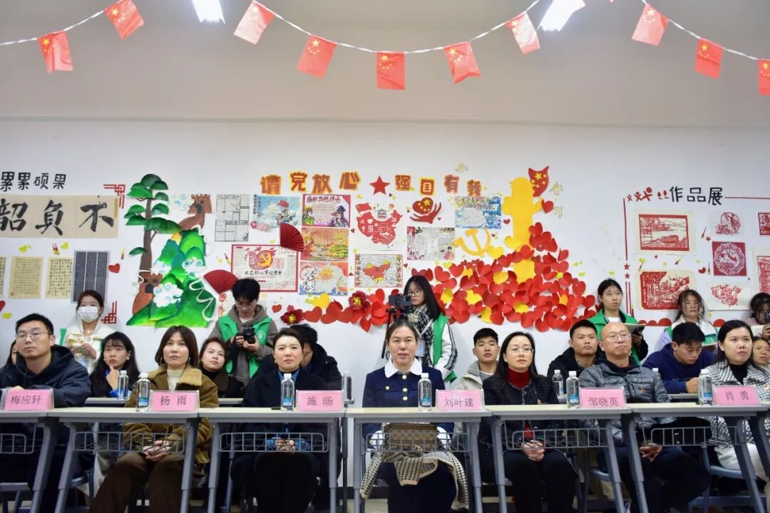 本站讯(团委 甘露 梅应轩 杨雨 施旸 学生记者 邓文燕 南灿)为强化我校广大青年学子对强国复兴历史使命和责任担当的信念感与认同感,以实际行动践行“请党放心,强国有我”的青春誓言。12月5日晚,校团委在全校范围内组织开展“宜职青年心向党,强国复兴勇担当”主题团日活动。活动开展过程中,各班团支部紧扣本次活动主题,采用PPT讲解、观看视频、集体合唱、诗歌朗诵、戏剧表演等多种形式开展此次活动。本次示范性主题团日活动由师范学院学前教育22501班团支部承担,校党委委员、副校长刘叶建、师范学院部分领导、校团委全体工作人员、各二级学院团总支书记前往现场观摩,此次活动也在“宜春职院青年”视频号上同步直播,供全校师生观摩学习。活动伊始,通过观看强国复兴主题视频,激励广大宜职学子争做能吃苦、肯奋斗、有理想、敢担当的新时代好青年。随即朱若婷同学声情并茂地讲述了红色故事《藏在墙缝里的遗书》,在场众人听闻感慨万千,使先辈之革命精神传颂后世,将理想信念之光照亮青年学子前行之路。情景剧《答案》跨越历史与革命先辈相遇,在层层递进的故事情节推动下,同学们找到了人生道路上的最终“答案”——为祖国繁荣富强贡献自己的一份力量,为建设社会主义现代化国家奋勇前行。活动在全体同学悠长高亢的大合唱歌《灯火里的中国》中拉下帷幕。活动结束后,本次示范性主题团日活动点评嘉宾医学院团总支书记李莫娴,对活动所呈现的效果与氛围表示肯定与鼓励,同时呼吁广大青年学子努力拼搏、奋勇争先,为时代发展进步注入强大青春动力。刘叶建也充分认可此次活动形式的丰富性和创新性,代表学校党委号召广大青年学子要以实际行动肩负起复兴使命,高举中国特色社会主义伟大旗帜,奋力谱写全面建设社会主义现代化国家崭新的篇章。此外,各班级团支部也通过PPT展示、歌曲合唱、诗歌朗诵、集体合唱、趣味问答等形式表达自己对此次活动的理解和感悟。师范学院学前教育22501班团支部作为本次示范性主题团日活动班级荣获第一名。护理学院护理22303班团支部荣获本次活动第二名;经济管理学院会计22301班团支部荣获本次活动第三名。