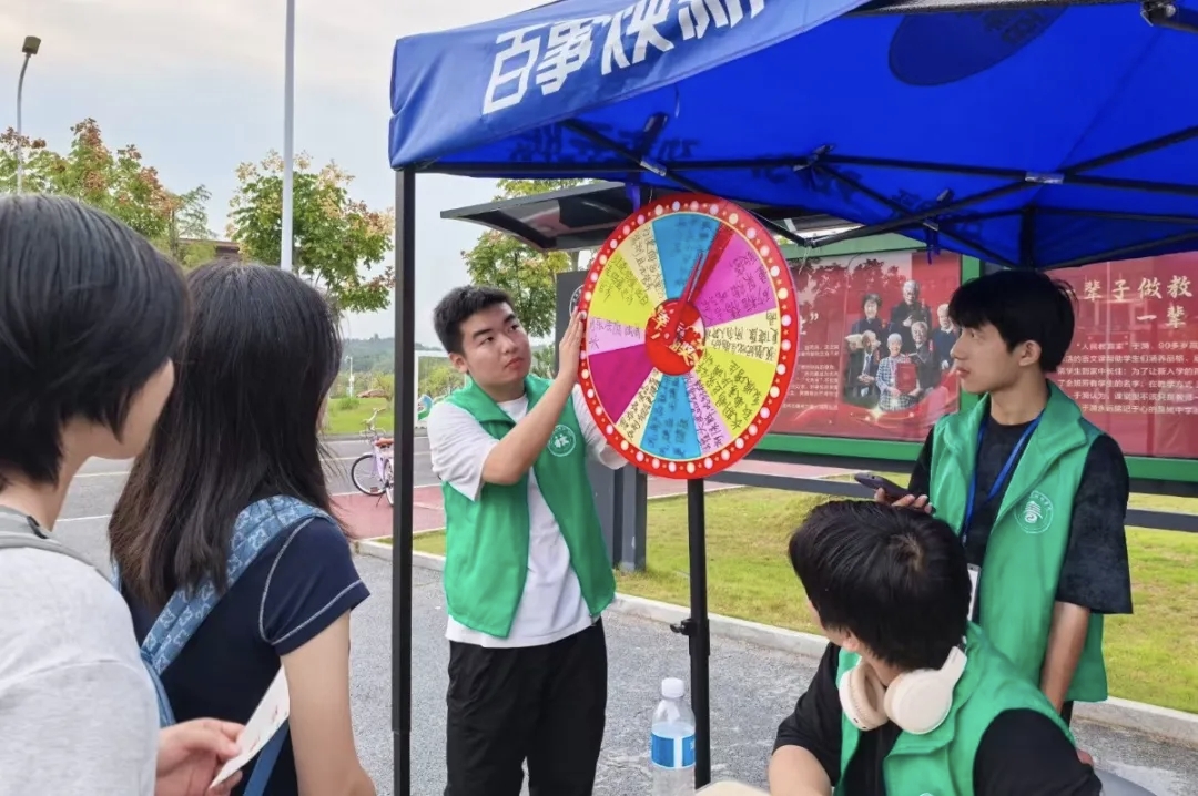 本站讯(团委 张为岷 刘嘉妮 王玮 学生记者 曾雅萱 汤包根)舌尖遇校园,趣享好时光。为进一步保障学生的健康成长与校园的和谐稳定,增强同学们的食品安全意识,9月29日下午,我校于西区食堂门口开展“舌尖安全,‘食’刻把关”食品安全活动,本次活动面向全体在校大学生。活动现场,同学们纷纷驻足。食品安全快问快答中,同学们踊跃参与,积极抢答,轻松拿下环节盖章。一旁写有“谣言”标题的大转盘也吸引了他们的目光,在思考的10-15秒内,他们认真判断真假并简述理由。现场气氛热烈,透露出“人人关心、人人参与、人人受益”的食品安全良好氛围。“食品搭配连连看”活动中,参与者看着随机搭配的食品,快速判断其安全性,并清晰阐述其中的营养与健康知识,将食品安全认知转化为实用技能。而在“‘食’安全风险排查”活动中,同学们写下食品名称及不安全的原因,在这个过程中不仅快速识别出食品风险点,还能结合日常饮食给出规避建议,让食品安全意识真正融入生活细节。