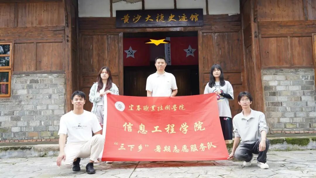 本站讯(团委 张为岷 刘嘉妮 王玮 学生记者 曾雅萱 汤包根)为进一步动员引领青年学子在投身基层建设、服务家乡发展中坚定信念、增长本领,引导广大青年学生在深入社会、了解国情、接受锻炼的过程中培育和践行社会主义核心价值观。6月24~27日,信息工程学院师生团队来到宜春市宜丰县天宝乡开展2025年暑期“三下乡”社会实践活动。实践过程中,师生团队分别来到黄沙大捷纪念遗址、石桥革命烈士陵园、熊雄故居等地,瞻仰烈士纪念碑,认真聆听当地的讲解,观看珍贵史料,了解黄沙大捷的历史背景、战斗经过、细节故事、重要意义和重大影响;学习熊雄烈士生平事迹精神,感悟熊雄烈士从热血青年成长为坚定革命者的壮阔历程和革命先辈“捐躯赴国难,视死忽如归”的赤子情怀。在天宝古村、平溪村,师生团队详细了解古村的历史变迁、村落保护、传统文化;实地调研当地“玫瑰罗酒主题村”的乡村文化、旅游资源、村落保护和产业发展现状,同时对古村院落环境进行杂草清除和院落打扫,为古村保护以及环境治理贡献力量。在长桥村小学,师生团队与当地小学生亲切交流互动,开展VR智慧支教活动,带领小朋友们体验VR眼镜虚拟交互,激发同学们的科学探索欲。