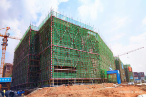 教学楼7栋,总建筑面积为185585平方米,有2栋已进入室内装修阶段,有1栋主体已封顶、墙体砌筑施工基本完成,有1栋已施工至顶层(共五层),有1栋已施工至第四层(共五层),其余2栋正在进行人防工程施工。