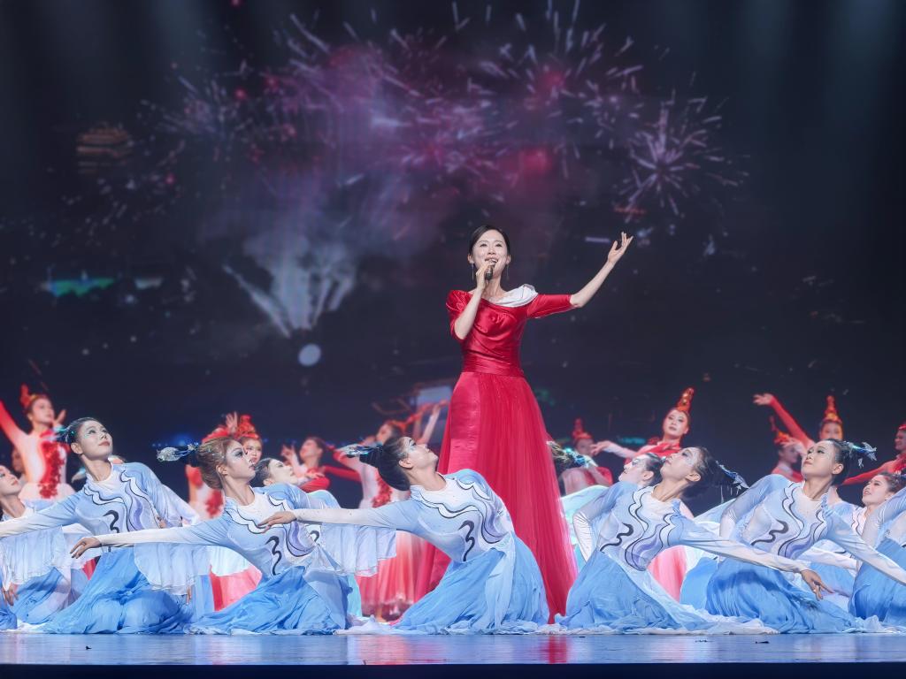 本站讯(艺术与设计学院 汪腾飞)2025年9月23日晚,宜春市第十九届月亮文化旅游节开幕式在宜春市文化中心盛大举行。艺术与设计学院漆漩老师带领艺术教育专业21503、23302、24301班38名学生,以歌舞《月照宜春》惊艳亮相,用灵动舞姿与深情演绎诠释宜春“月亮之都”的浪漫诗意。