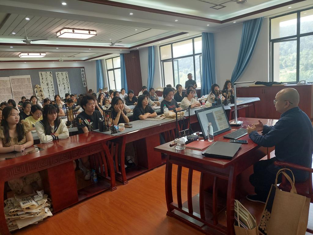 本站讯 (艺术与设计学院 朱文彩)为积极贯彻落实我校职业教育活动周要求,大力弘扬工匠精神,培养高素质技术技能人才,推动书画艺术专业高质量发展。5月16日上午,艺术与设计学院邀请全国硬笔书法师资高级研修班专家、全国硬笔书法赛事评委、中国书法家协会会员、宜春市书法家协会副主席刘青春来校开展讲座,并对学生作品进行指导。院长黄卉、书画艺术专业师生参加了此次活动。