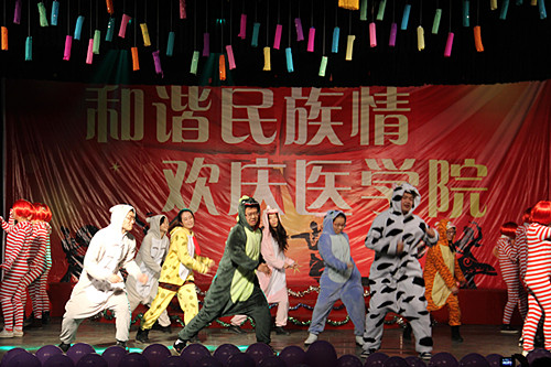 1月5日晚,医学院2015年元旦晚会在我校大礼堂倾情上演。晚会以“和谐民族情,欢庆医学院”为主题,医学院来自19个不同民族的学生,起舞放歌,乐奏天籁之音。当晚,职院舞台刮起了民族旋风,校领导杨云山、易良春、杜贵芳,医学院院长刘敏、党总支书记舒文及相关部门和部分系院领导亲临现场,与数千名师生共享精彩的视觉盛宴。